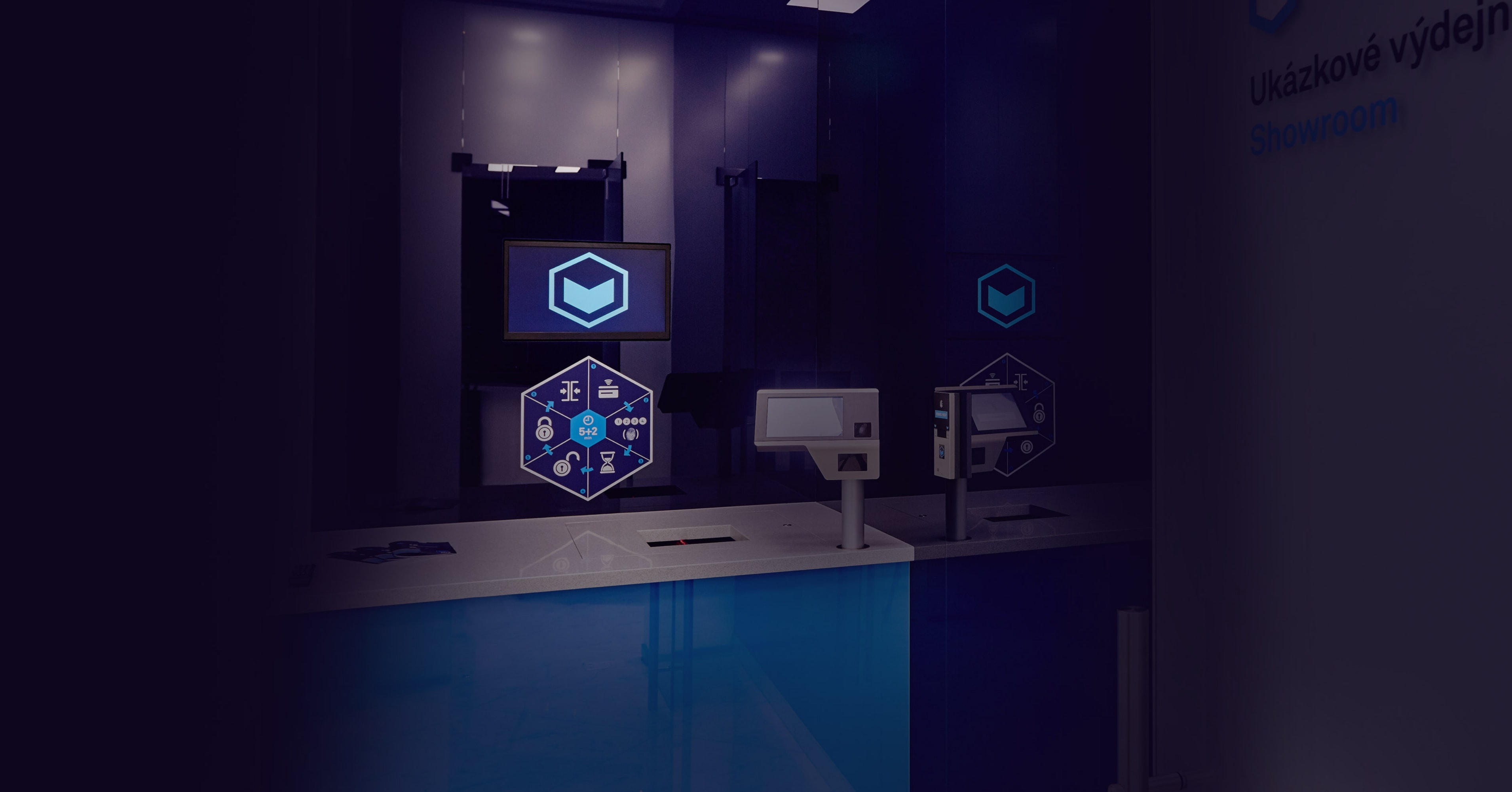 Místnost s výdejními terminály jsou bez kamer. Samoobslužný systém dodaný švédskou firmou Gunnebo nevyžaduje žádnou asistenci personálu 24SAFE.